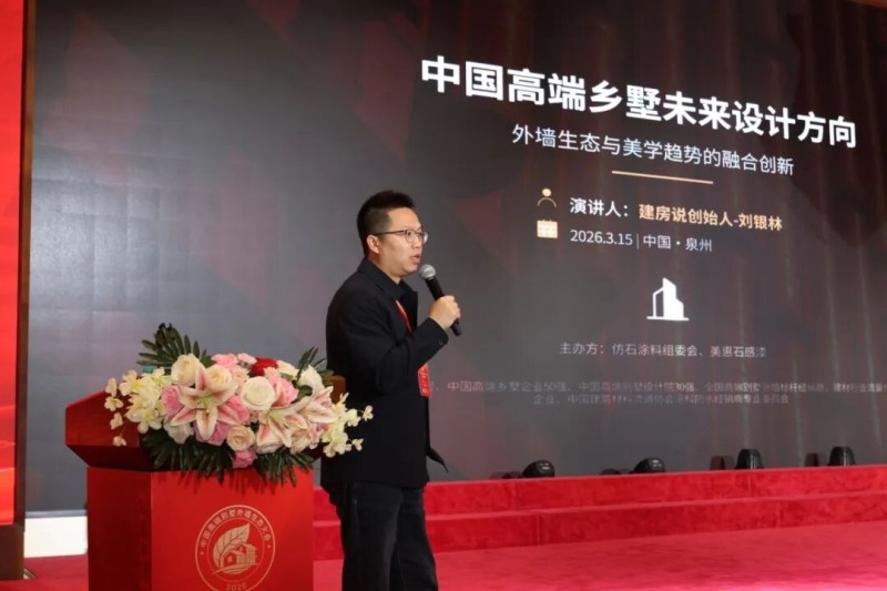 建房说创始人刘银林围绕《美学即流量》主题,结合消费升级趋势,深入解读建筑美学与高端别墅外墙的流量密码,为外墙设计创新、市场转化升级提供了全新思路。